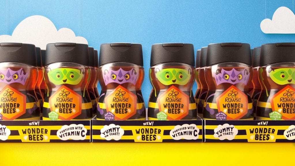 En Reino Unido, la marca de miel Rowse ha lanzado una línea de producto para los más pequeños: la Wonder Bees. El objetivo es que los niños tomen miel en sus desayunos en vez de tanto azúcar. La miel endulza tus comidas y es más sano que el azúcar. Siempre con moderación, claro, que siempre podemos acabar como Winnie de Pooh… Que de tanto comer miel se le rompía las costuras.